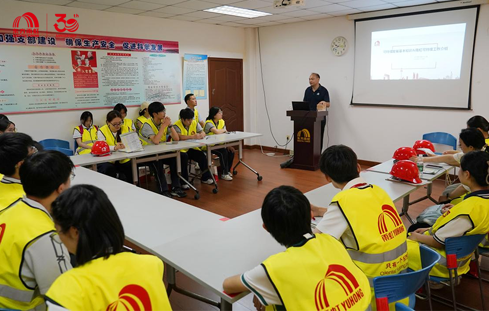 在東方雨虹上海生產(chǎn)研發(fā)物流基地展廳內(nèi),安環(huán)資深經(jīng)理陳濤詳細(xì)介紹企業(yè)發(fā)展歷程、參建經(jīng)典工程案例及核心產(chǎn)品。直觀展示配合生動(dòng)講解,幫助學(xué)生建立對(duì)東方雨虹產(chǎn)品特點(diǎn)與技術(shù)優(yōu)勢(shì)的初步認(rèn)知,為后續(xù)實(shí)踐奠定基礎(chǔ)。